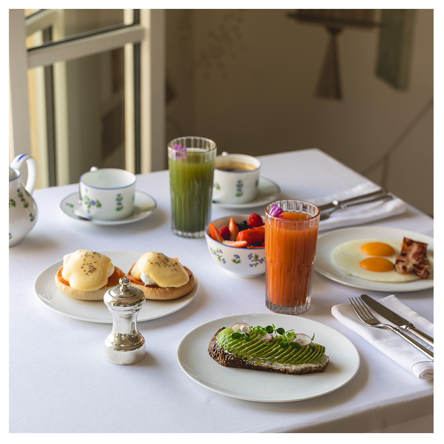 Dalle 7:30 alle 11:30, la colazione, immaginata dal nostro chef, viene servita dove desiderate: in camera, sulla terrazza o nella sala da pranzo. Nel menù, una versione continentale con succhi di frutta freschi spremuti, una bevanda calda, un cestino di pane e viennoiseries e un’insalata di frutta. Per un risveglio più goloso, lasciatevi tentare dagli avocado toast, dal granola ai frutti rossi o dalle uova alla Benedict. E se la serata si è protratta un po’ troppo, i nostri succhi “Detox” o “Energy” sapranno prolungare con dolcezza la calma del mattino.